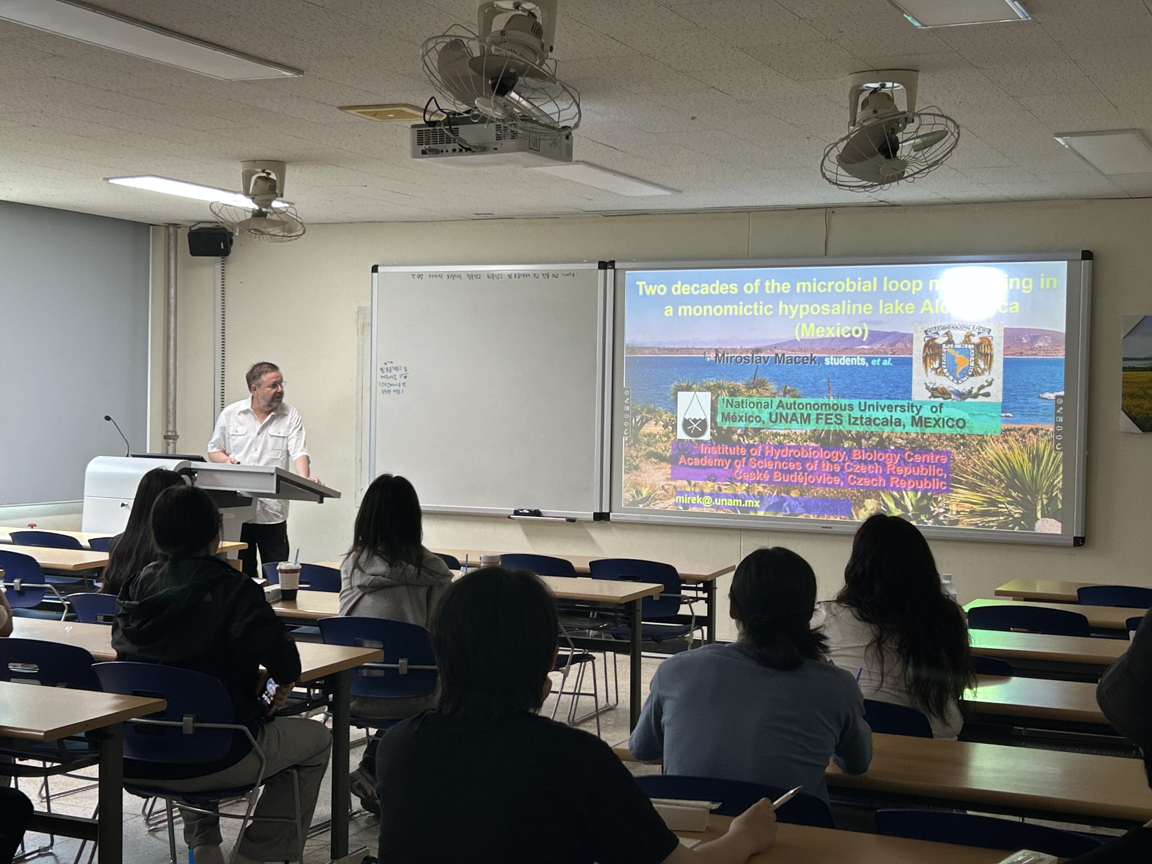 Macek 교수님은 멕시코 Alchichica 석호에서 20년간 진행한 미생물 생태 연구 결과에 대해 소개하였다.