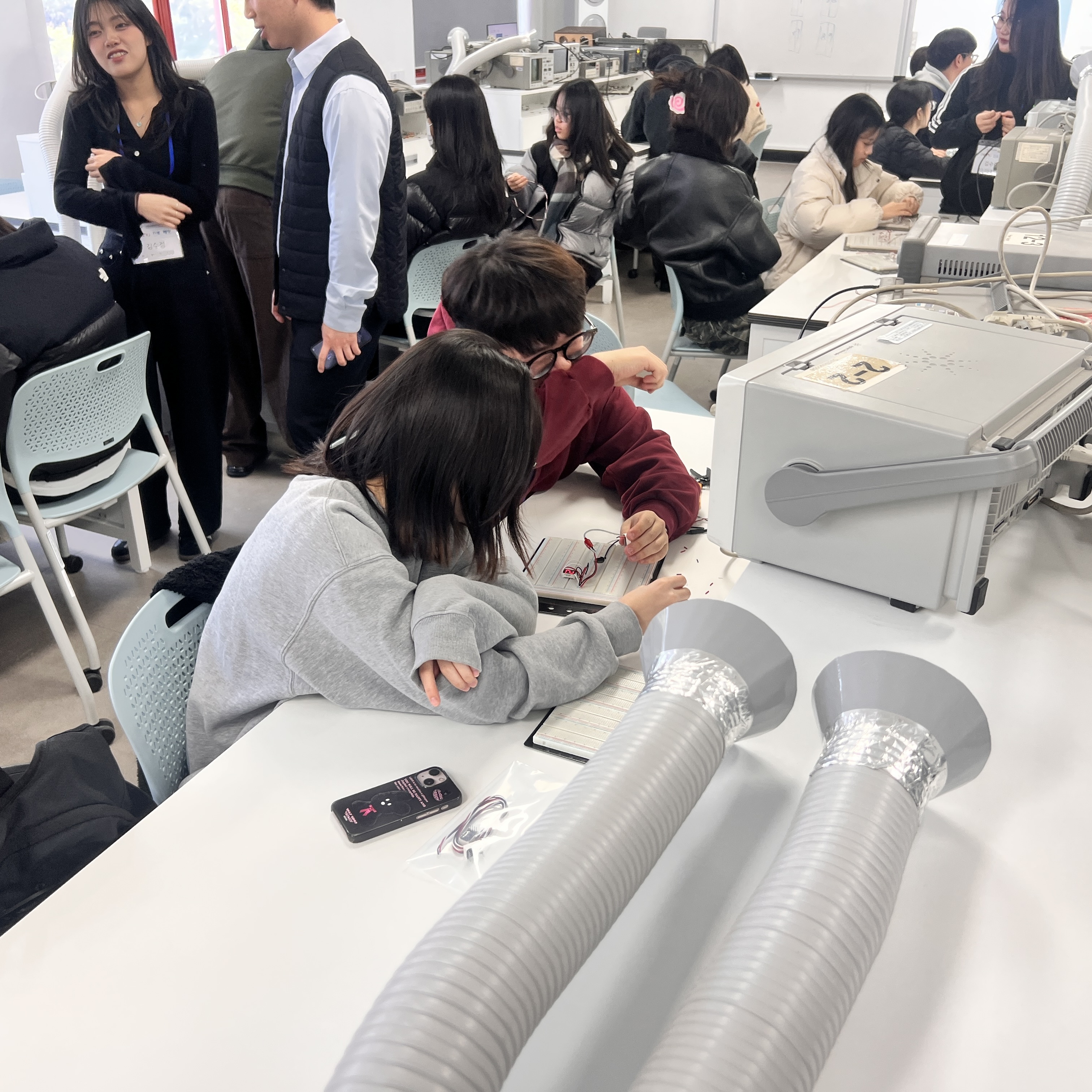 특히, 1학년 우리 재학생들이 열심히 실험 내용을 숙지해 자신의 전공 능력을 고등학생들에게 전수해 주는 모습이