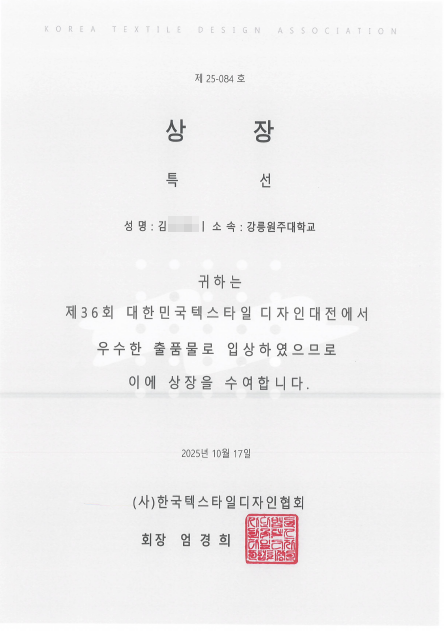 2025년도 섬유디자인 전공 제 36회 대한민국 텍스타일디자인 공모전 수상