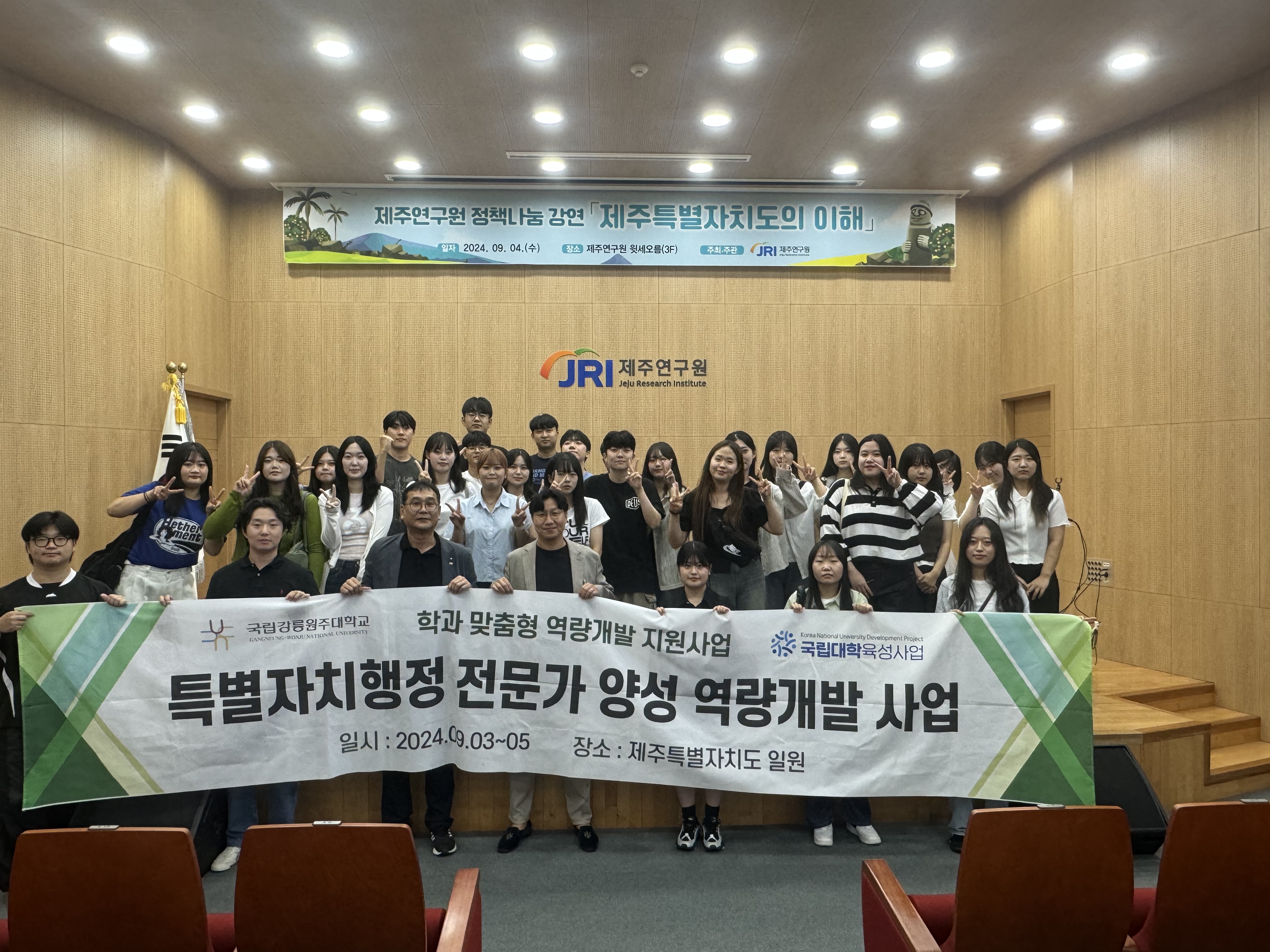 강릉원주대 자치행정학과에서는 지난 202493~5일 학과 맞춤형 역량개발 지원 사업 특별자치행정 전문가 역량개발 프로그램으로 제주도 일원을 방문했다.