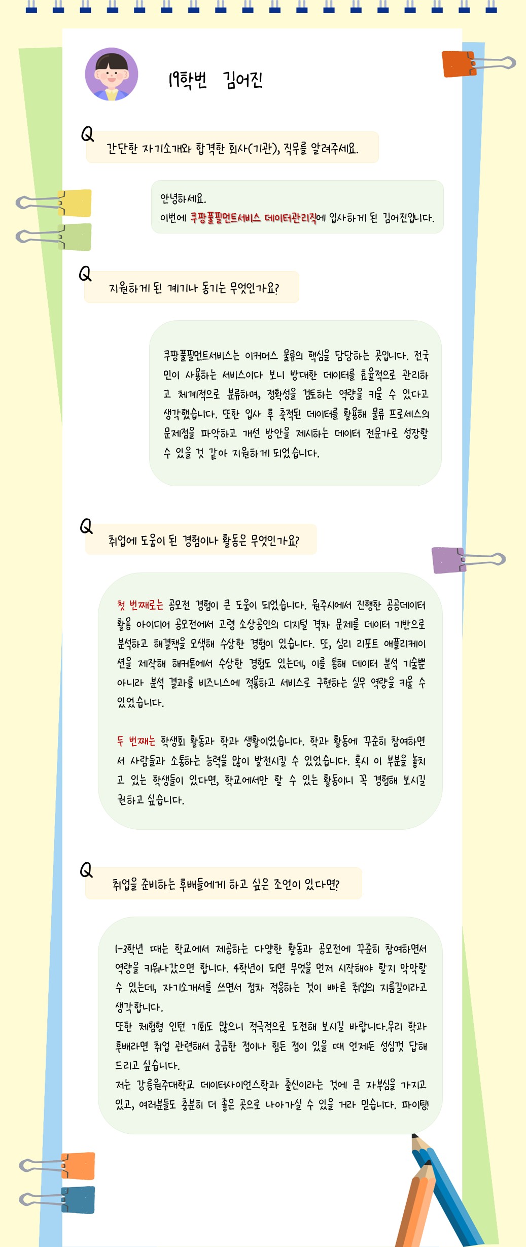 [선배들의 취업 스토리] 19학번 김어진 졸업생 (쿠팡풀필먼트서비스 데이터관리직)