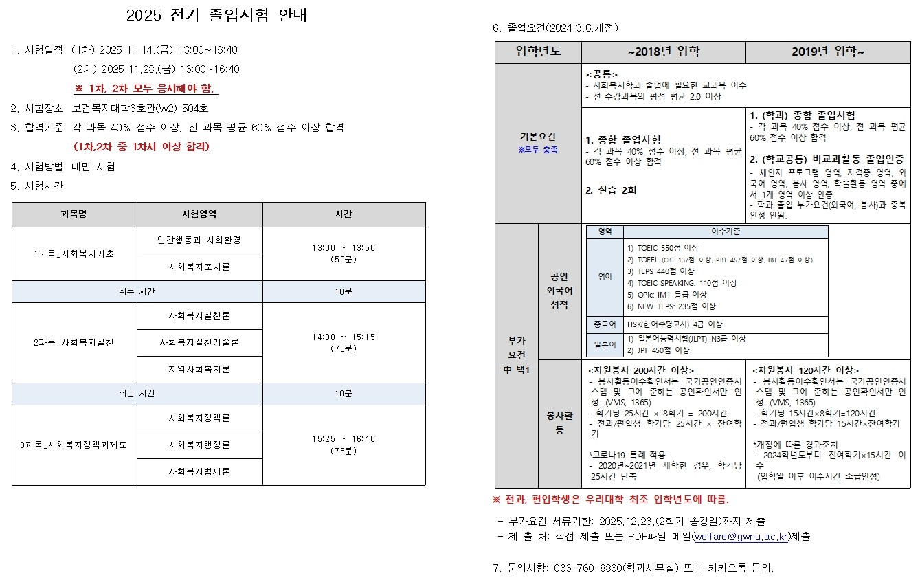 2025 전기 졸업시험 안내