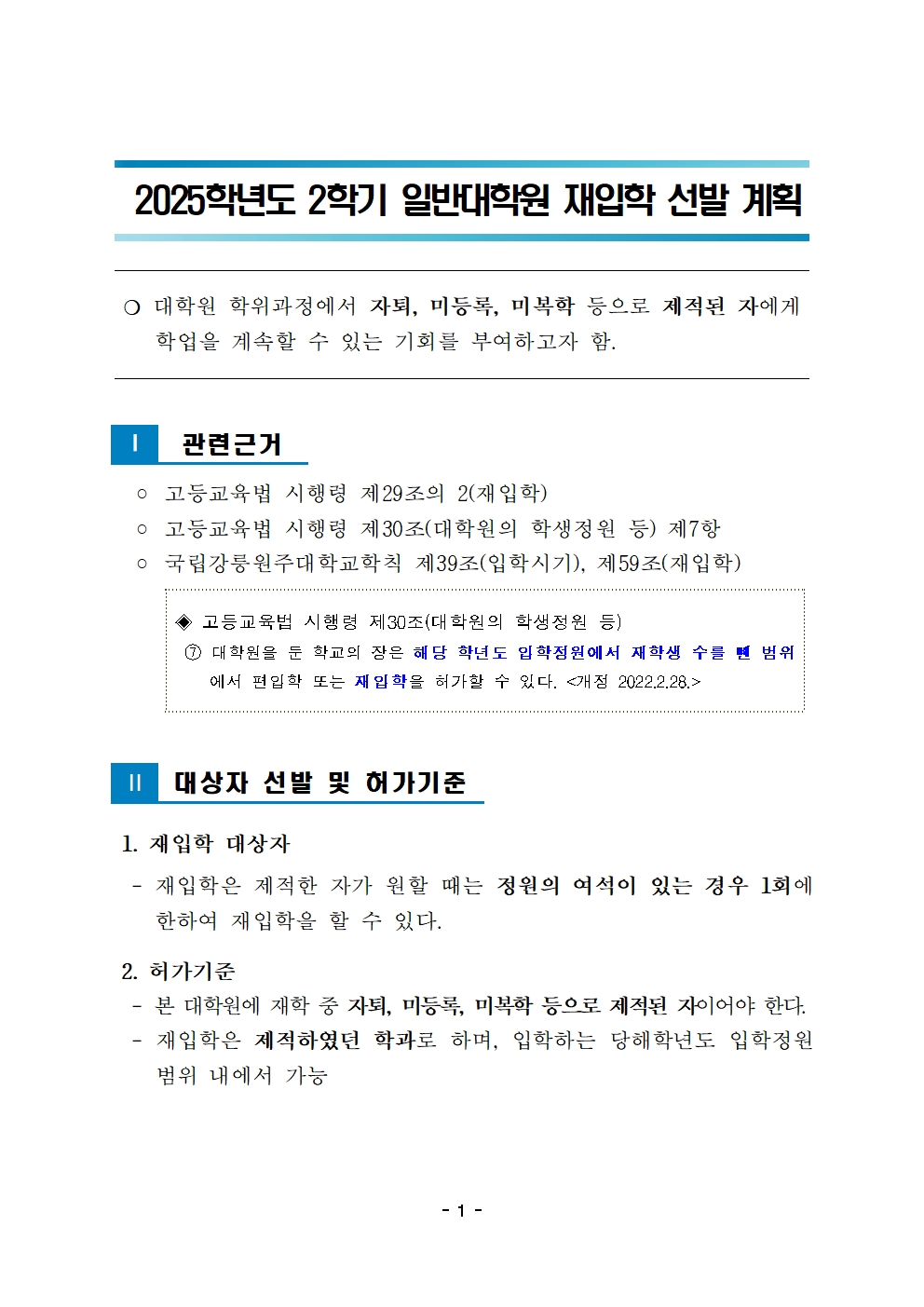 fnctId=bbs,fnctNo=847 2025학년도 2학기 일반대학원 재입학 신청 안내 작성일 2025.06.26 작성자 원민정 조회수 1698 첨부파일 2025학년도 2학기 일반대학원 재입학 시행 계획.hwp 2025학년도 2학기 일반대학원 재입학 신청 안내.pdf