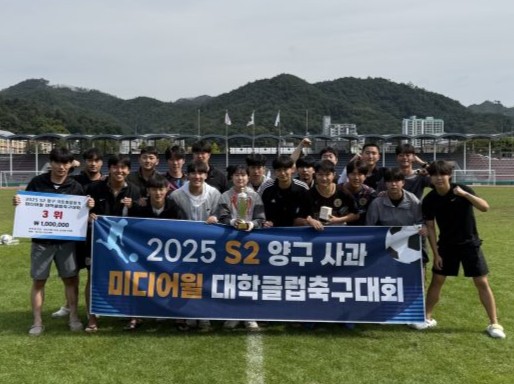 40년 전통을 자랑하는 국립원주대학교 체육학과 축구동아리 ‘유니콘(회장 김종록)’이 최근 강원특별자치도 양구군에서 열린「2025 S2 양구 사과 미디어월 대학클럽 축구대회」에서 3위를 차지했다.